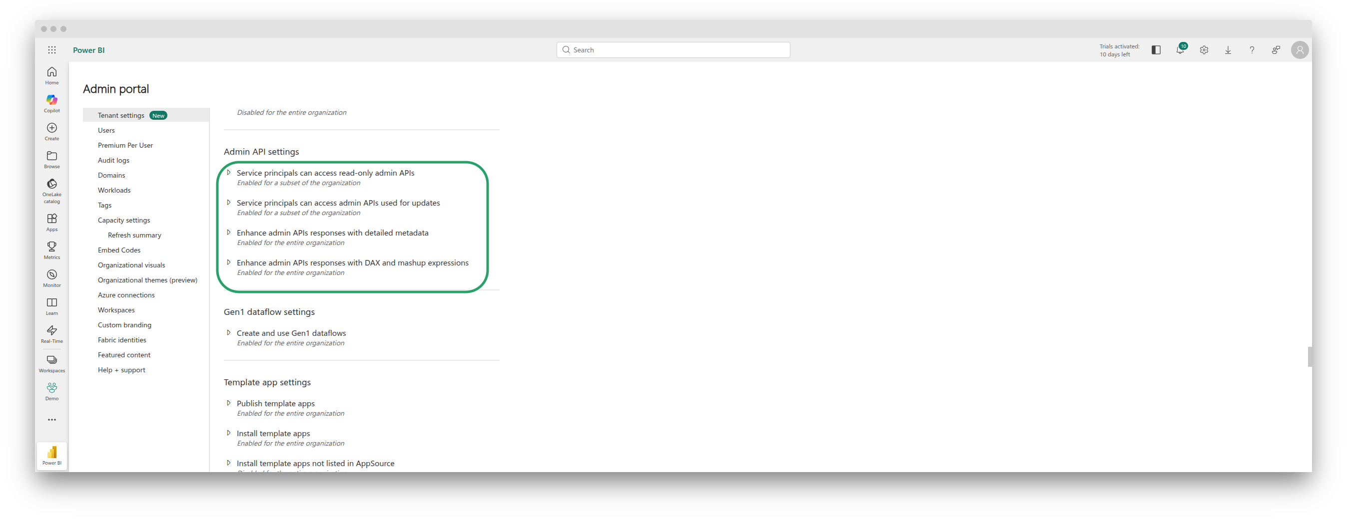 Navigate to Power BI Admin Portal and enable the following two settings: